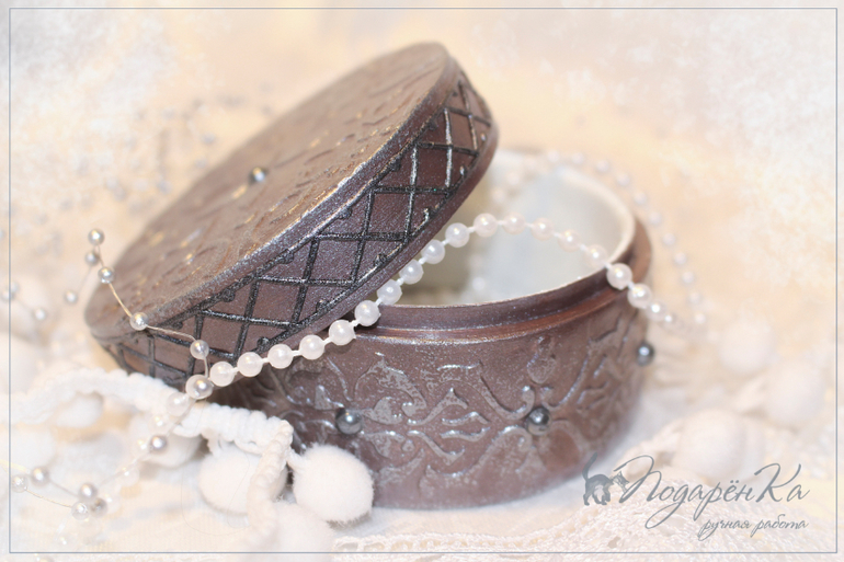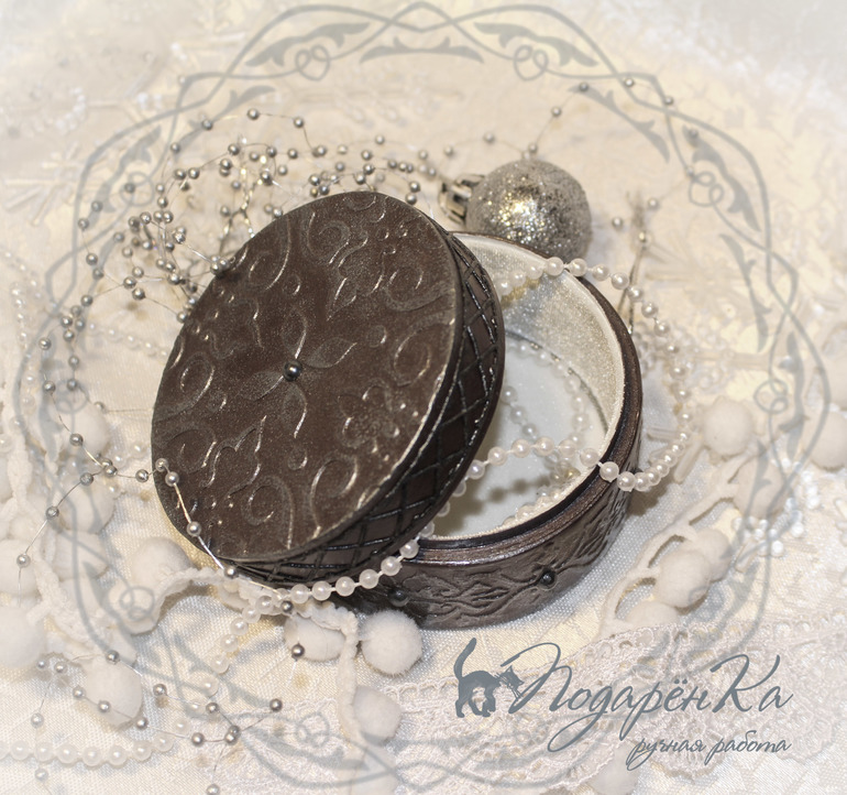 Здравствуйте) Хочу представить круглую шкатулку, диаметр 8см, высота 5см. Сделана полностью с нуля. Внутри бархатная ткань. В наличии.