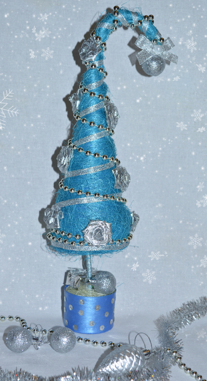 Елочка выполнена из сизаля, украшена розочками ручной работы.