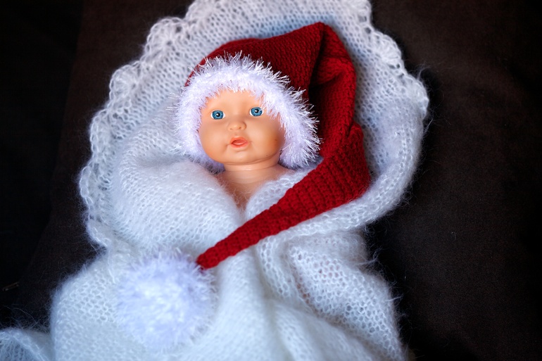 Пуст первый Новый год Вашего малыша станет незабываемым! Комплект: красный колпачок, плед из мохера и мягкий шарик (наполнитель для мягких игрушек).