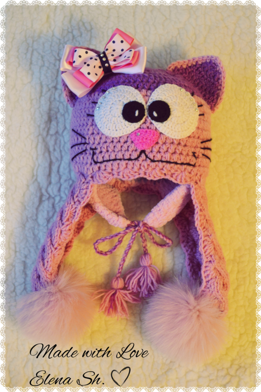 Зимняя шапока Киса на девочку 47-50 ОГ