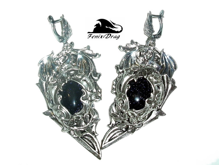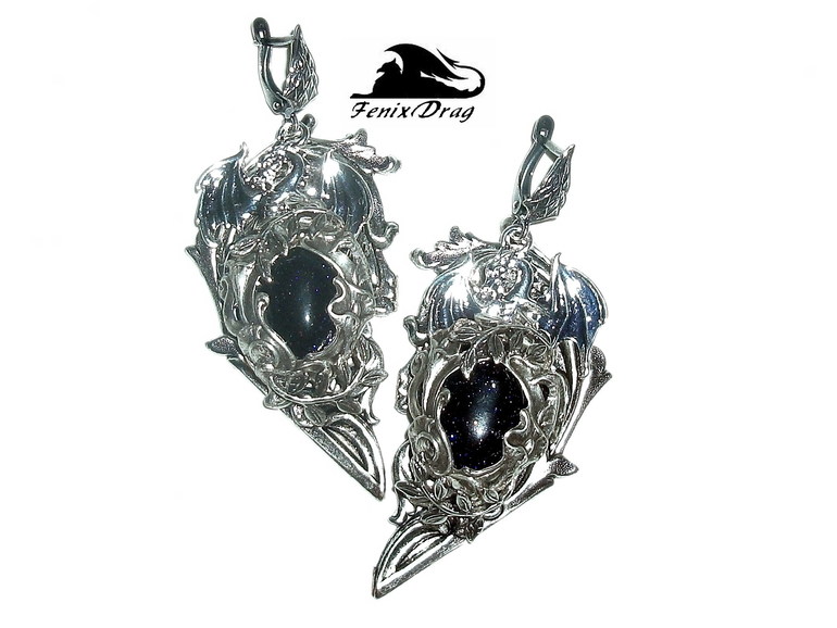 Серьги "Сердце дракона между звезд" с синим авантюрином в стиле Винтаж, Стимпанк, Готика, Викторианский