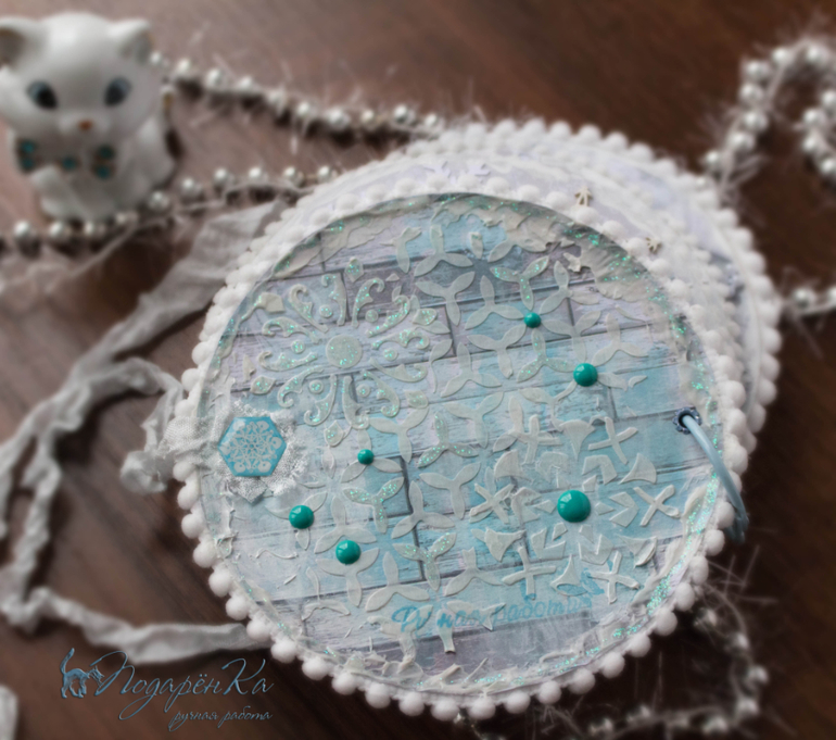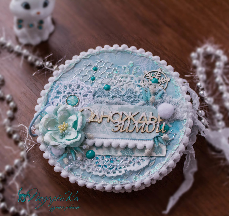 Скрапбукинг (альбомы, открытки и пр.)Здравствуйте, дорогие читательницы блога! Вот и пролетели зимние праздники) Много произошло интересного и запоминающегося за эти дни. Хочу представить вашему вниманию мини-альбом круглой формы на три разворота. В него можно поместить 6 самых лучших ваших фотографий! Альбомчик выполнен в нежных бирюзово-голубых тонах. Прекрасно подойдет для подарка или сохранит ваши воспоминания об этой зиме!)))