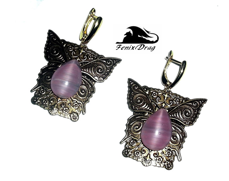 Серьги "Батерфляй" в стиле Ар Деко, Стимпанк, Винтаж