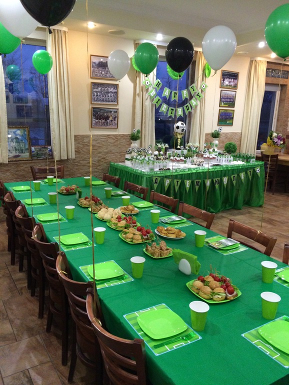 Предлагаю для взрослых мальчиков организовать и оформить день рождения в футбольном стиле. Можно поиграть в футбол, сделать тематический кенди бар и Пиньяту.Праздничный футбольный декор