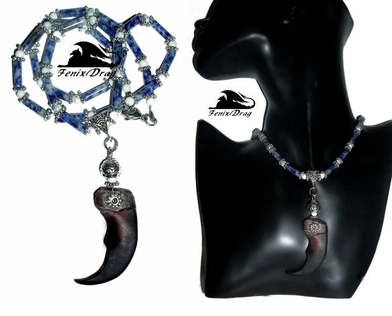 искусственный (синтетический) коготь медведя Гризли, содалит, белая бирюза, фурнитура под серебро