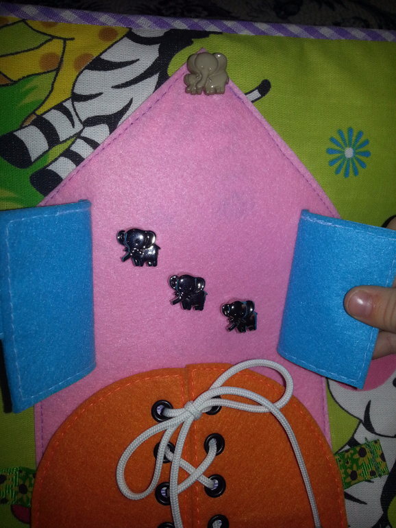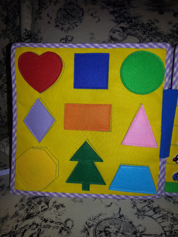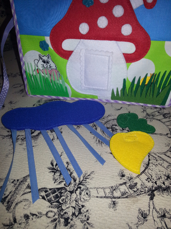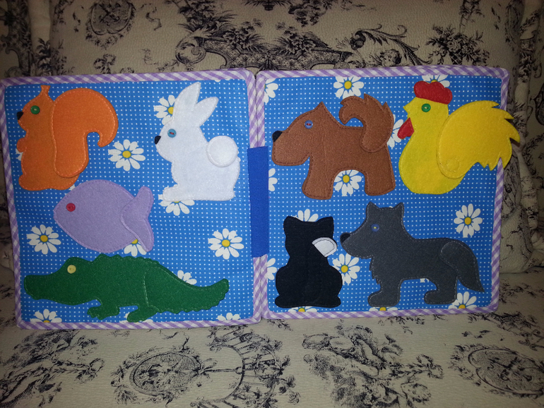 Размер книги 23*23 см, состоит из 6 листов ( 12 страниц - 10 игровых и 2 обложки ), содержит 39 съемных деталей..