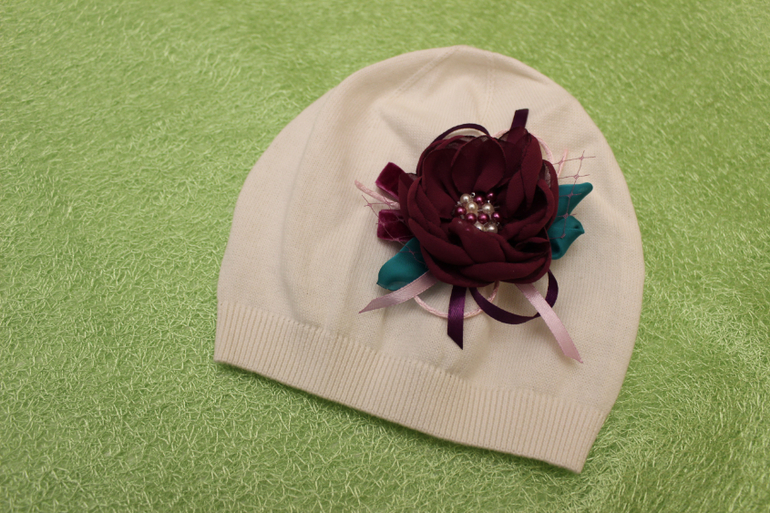 31. Цветок. (крепление по желанию-брошь или крокодил). С креплением брошь в ПОДАРОК черная трикотажная повязка. 350 руб.