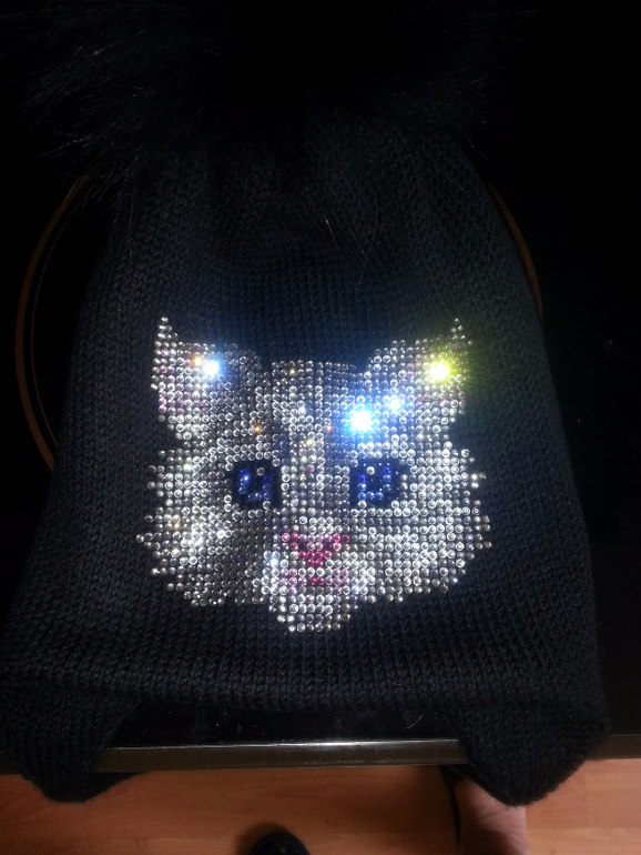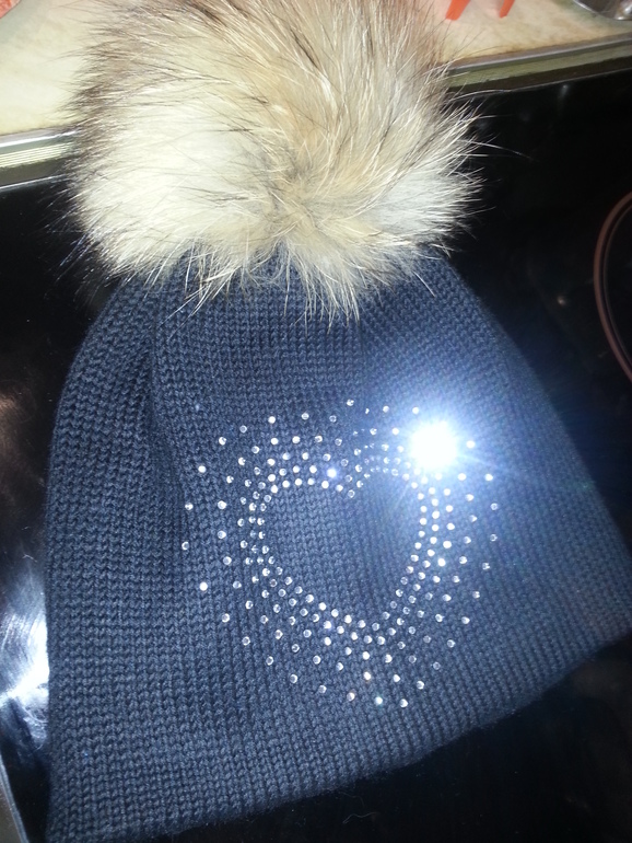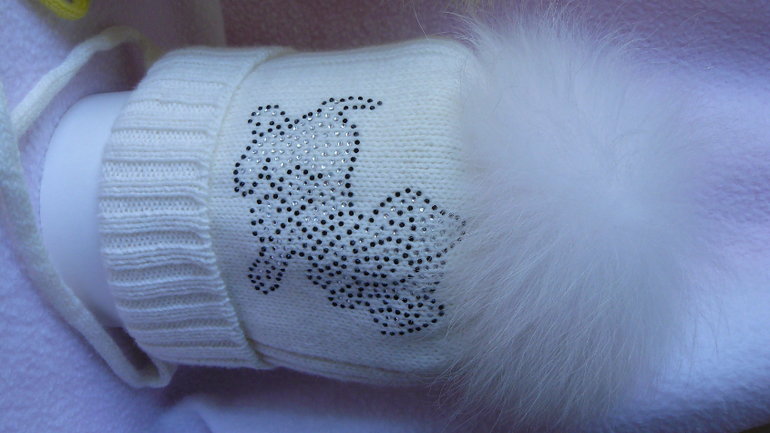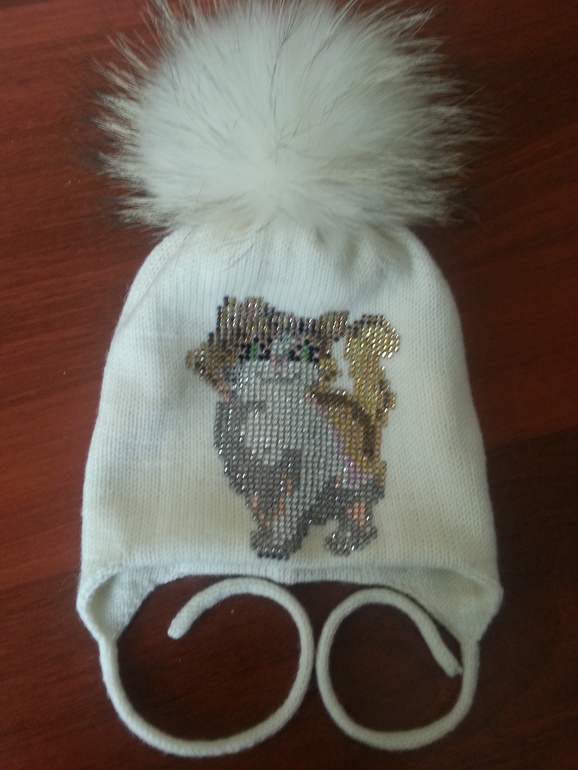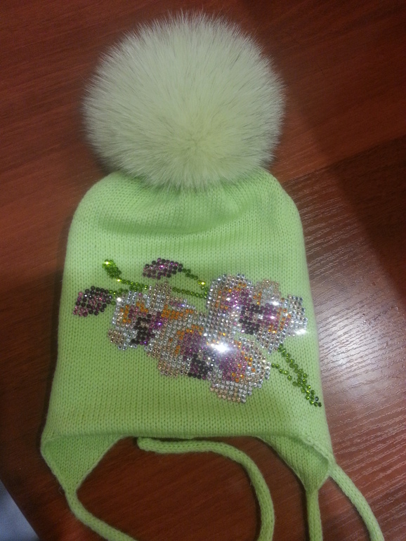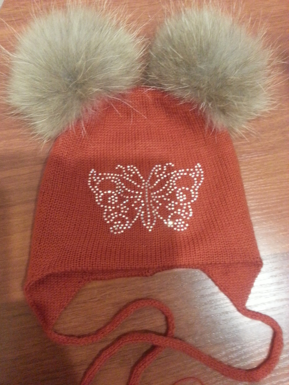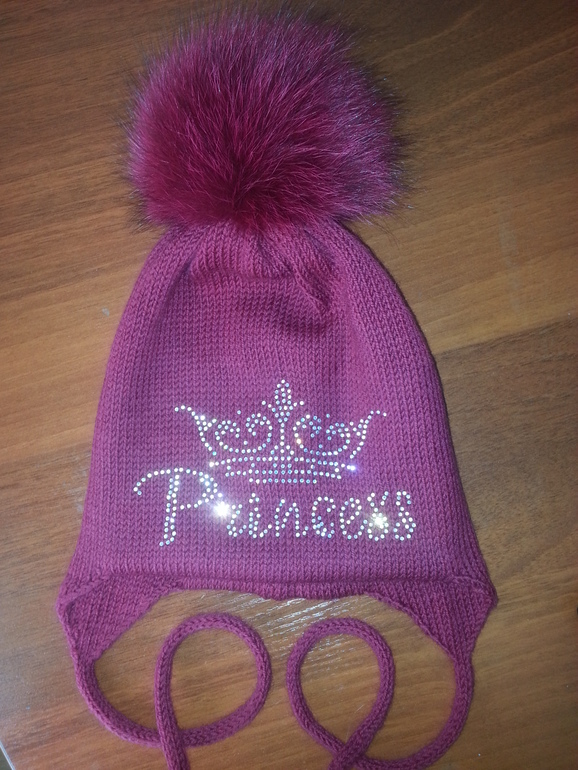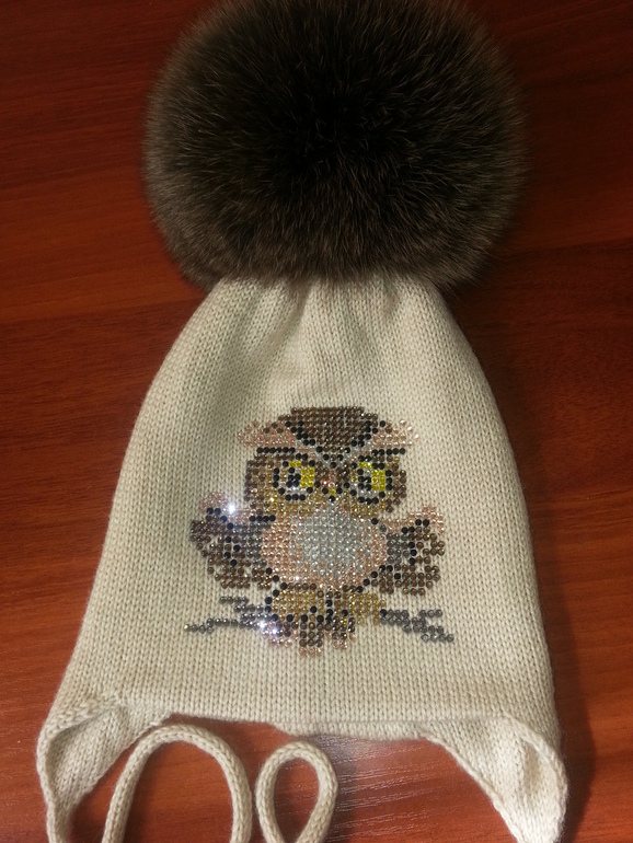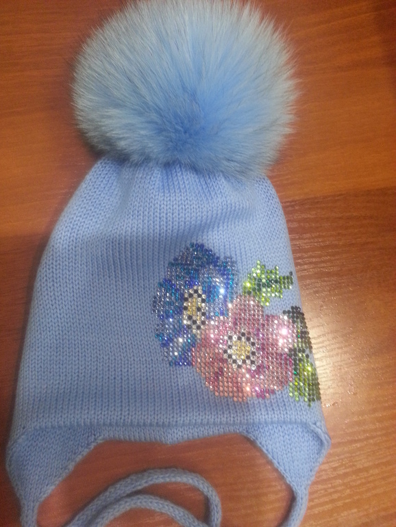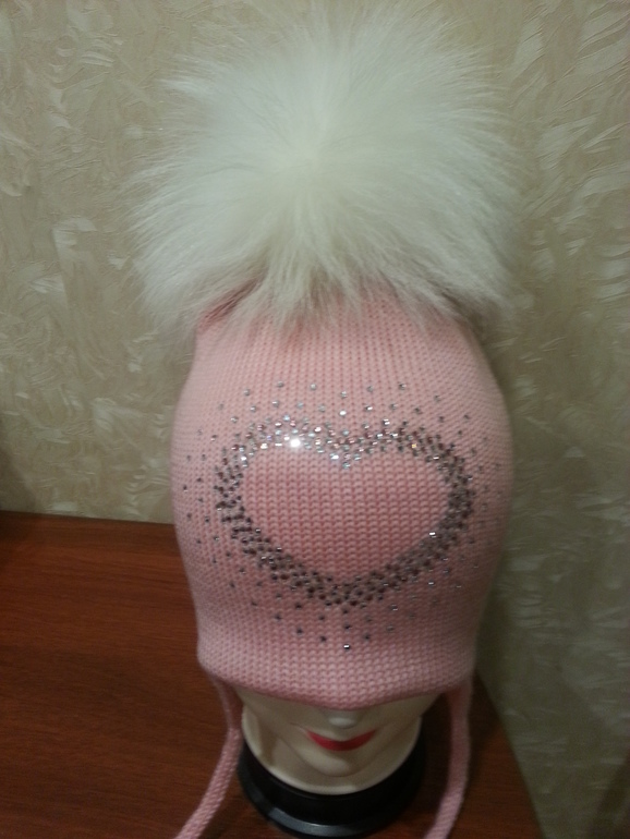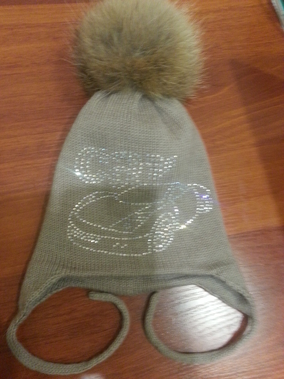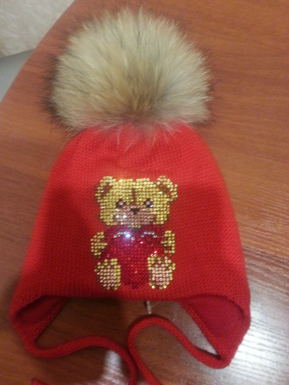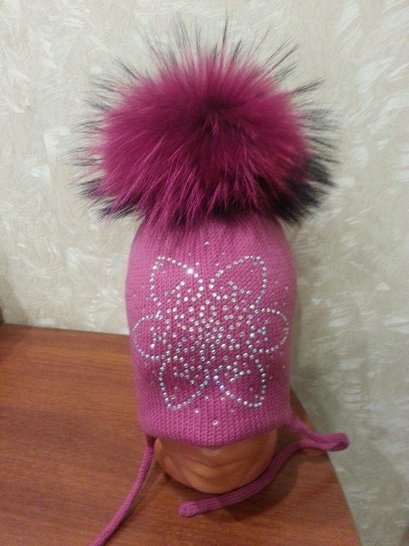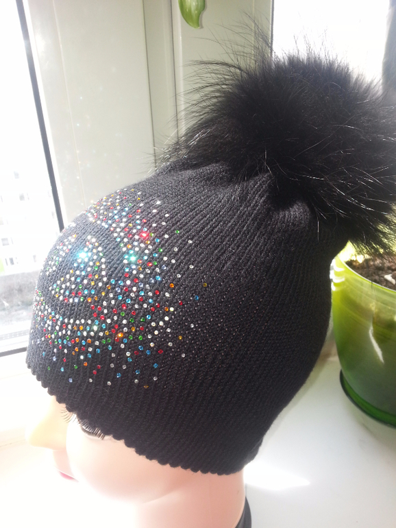 Двойные зимние с ушками и завязками (с флисом и без), с помпоном и стандартной картинкой из страз - 2400 р.