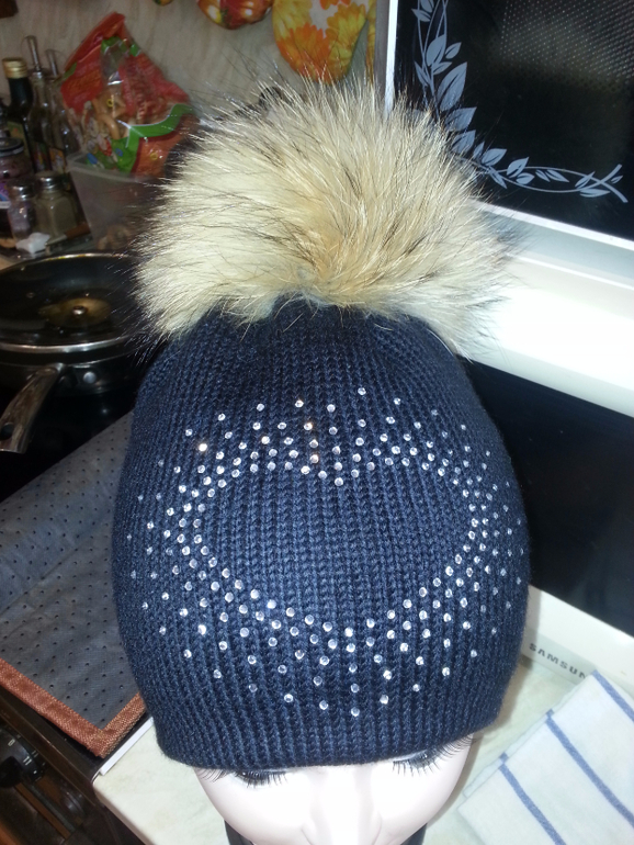 цвет ультрамарин, помпон натуральный енот (могу заменить на темно-синий песец) - 1200 р.ПРОДАНАр. 50-52