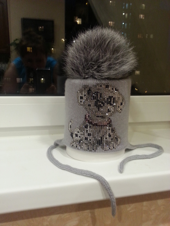 ОБРАЗЦЫ из наличия распродаю по цене, указанной в описании конкретной шапочкисветло-серая "Далматинец", помпон чернобурка серебристая В НАЛИЧИИ