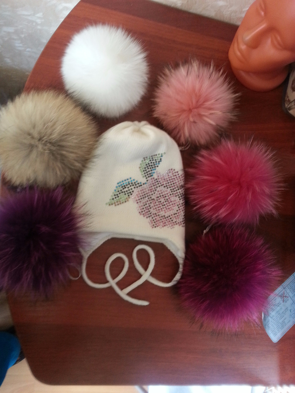 Помпоны натурального окраса (на заказ возможно изготовление помпонов любого размера и цвета из цельных крашеных шкур, цена договорная)