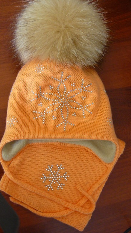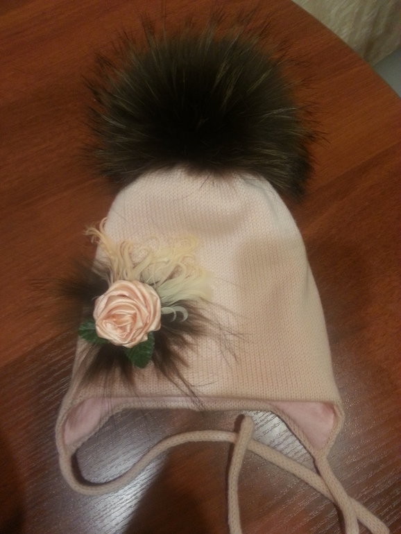 Комплект абрикосовый (шапочкадополнительно утеплена флисом) с помпоном из осветленного енота абрикосового оттенка - 2000 р.ПРОДАНО