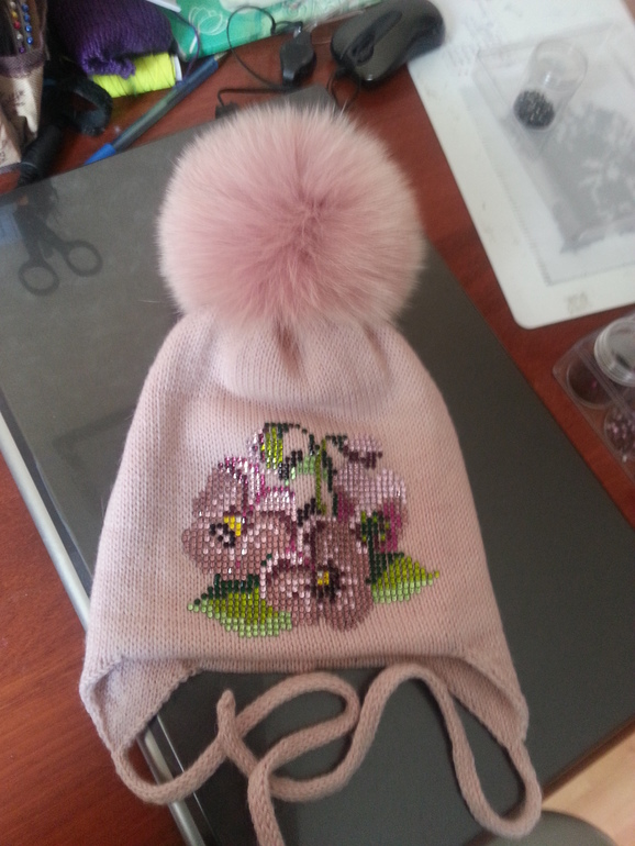 розовая, помпон енот (есть разные цвета помпонов). Дополнительно утеплена флисом 1200 р.ПРОДАНА