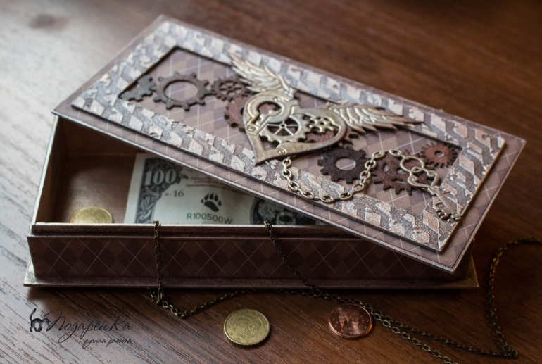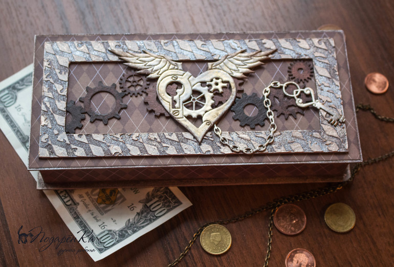 Скрапбукинг (альбомы, открытки и пр.)Как порой сложно выбрать подарок мужчине! Чтоб был стильным и не банальным. Купюрница в стиле стимпанк может послужить и как красивая упаковка для денежного подарка, так и быть самостоятельным сувениром!
