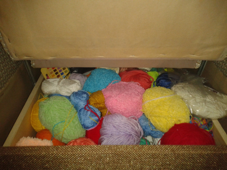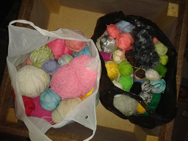 Еще положу с пряжей остатки пуговок и т.п.