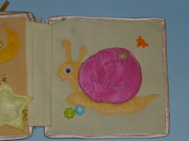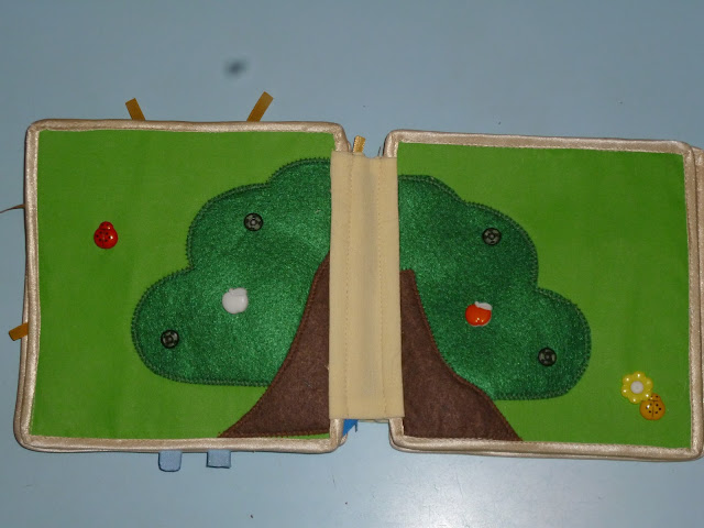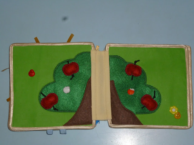 Лирическое отступление. Доче эта страничка нравится больше всего =) На каждой книжке что я шила и она тестировала перед отправкой новому владельцу этой страничке отводилось больше всего внимания =) То ли яблочки выглядят так натурально, то ли отстегивание и пристегивание кнопок вызывает у нее такой восторг непонятно =)