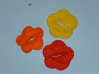 Правая сторона - задание на пуговицы. Стебель с тремя цветочками, каждый на пуговице. Специально для детских пальчиков, которые только учатся их застегивать-расстегивать каждая пуговичка на "ножке" из бусинки. Под кустиком из ленточек прячется цветочек, а под листиком грибочек.