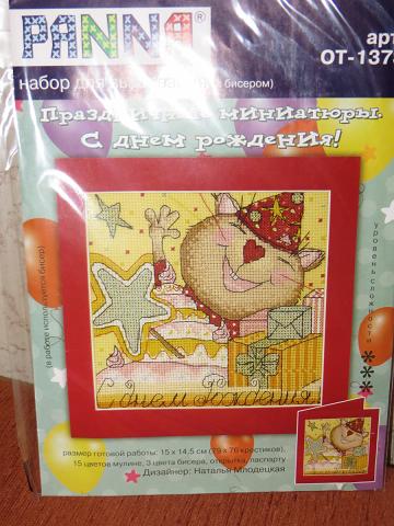 Набор для вышивания открытки или просто сюжета "С Днем рождения" цена420рсо скидкой 370р