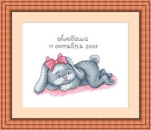 Набор для вышивания арт.Овен - 457 "Метрика с зайцем" 20х20 см