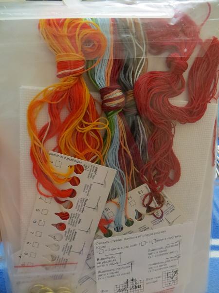 канва Zweigart Аида 14 с нанесенным рисунком (крестики), нитки мулине DMC 100% хлопок, схема вышивки, игла, открытка-паспарту из картона, инструкция на русском языке.