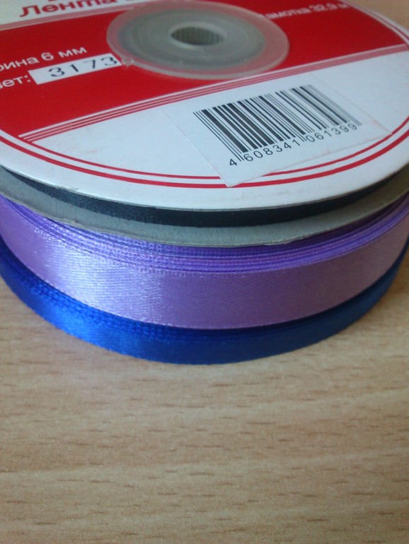 Ленты атласные 6 мм 33м черная и синяя по 50р