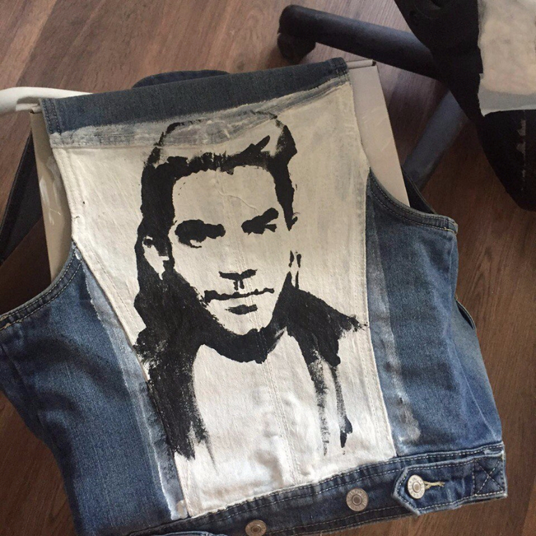 И естественно с выбором подарка я определилась сразу! Я решила подарить ей портрет ее любимого певца. А так как она просто обожает джинсовые жилетки, то расположение портрета было просто очевидным.