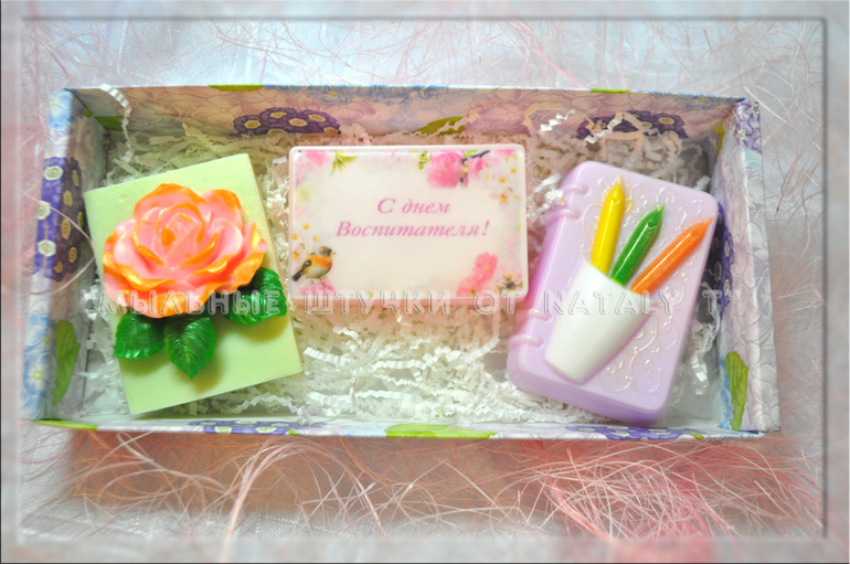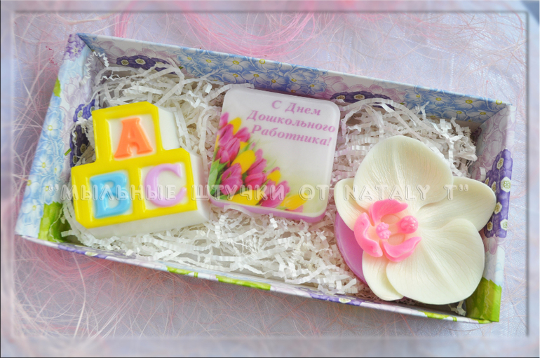 Мыло и косметика ручной работыЕсли Ваш ребенок ходит в детский сад или школу, и Вы хотите порадовать своих воспитателей, нянечек, учителей, педагогов с их профессиональным праздником - День дошкольного работника (27 сентября) и День учителя (5 октября), то мыло ручной работы может стать приятным подарком по такому случаю.