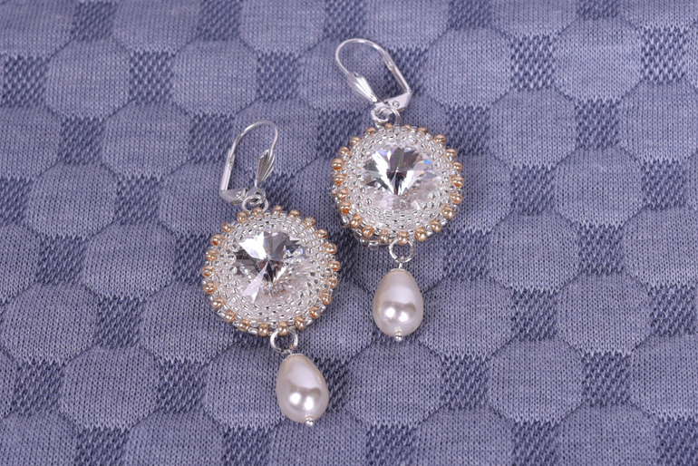 Бижутерия, броши, аксессуары для волосОбшитые элитным японским бисером, посеребряные швензы.