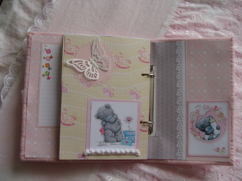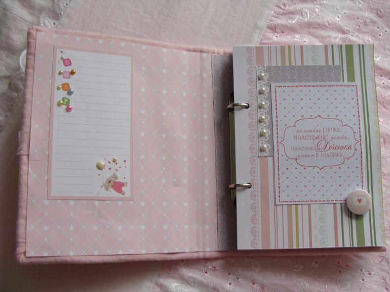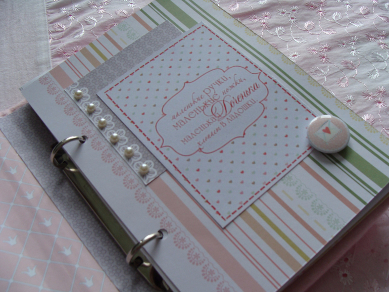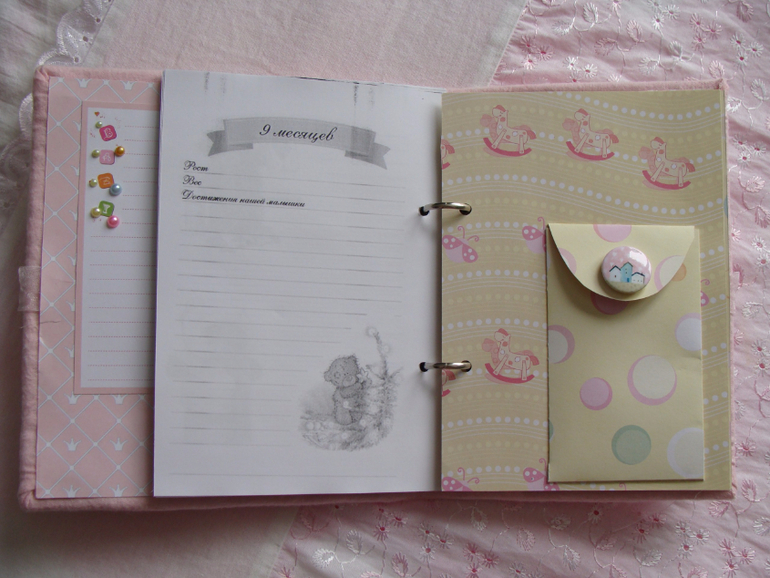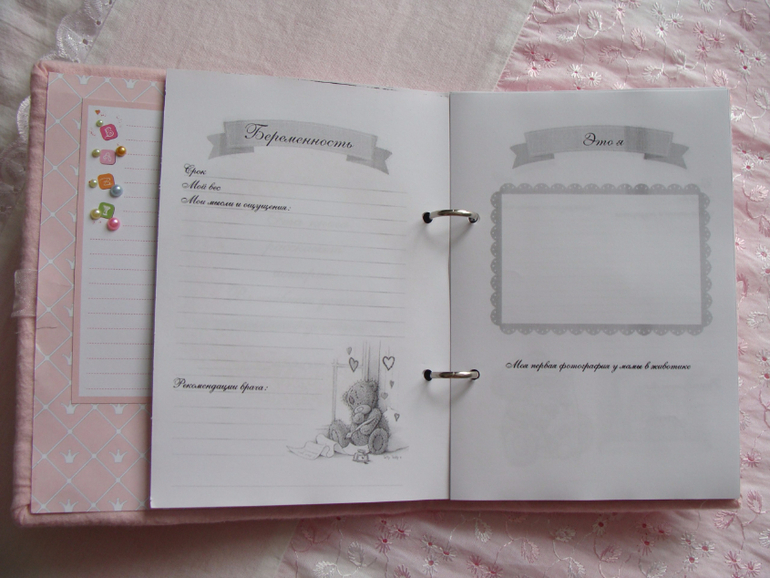 Бэбибук на кольцах, благодаря чему удобно менять странички местами и добавлять новые.