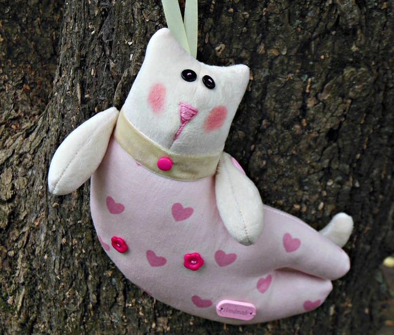 Текстильные сувенирные котики. Можно подвесить. Размер 21*19 см. Хороший подарок на Новый год или Рождество.