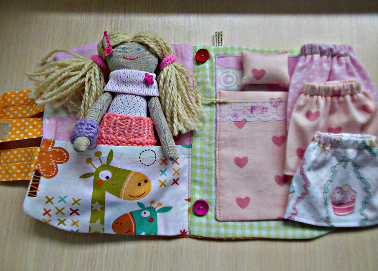 Куклы и игрушкиСумка-домик для куклы. в развернутом виде 28*21 см,. в собранном виде 14*21 см, без учета ручек, размер куклы 20 см.