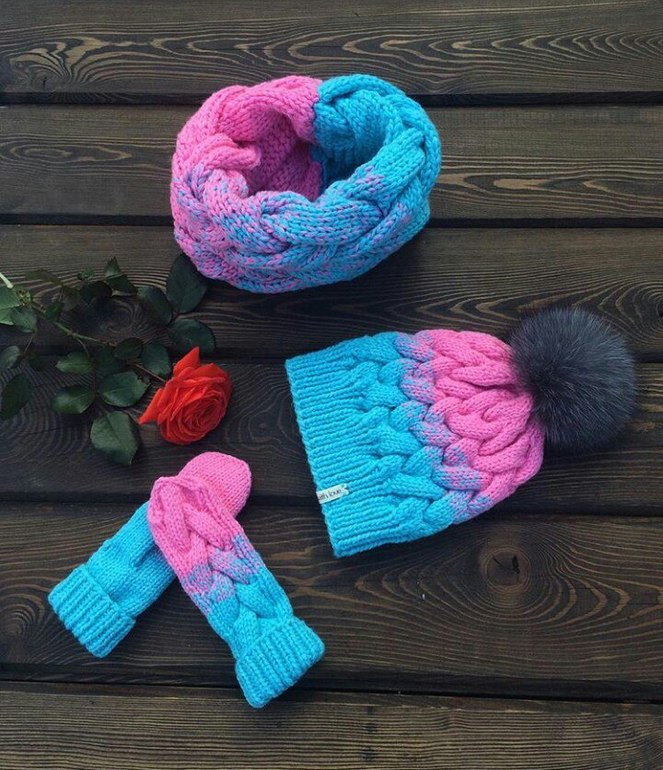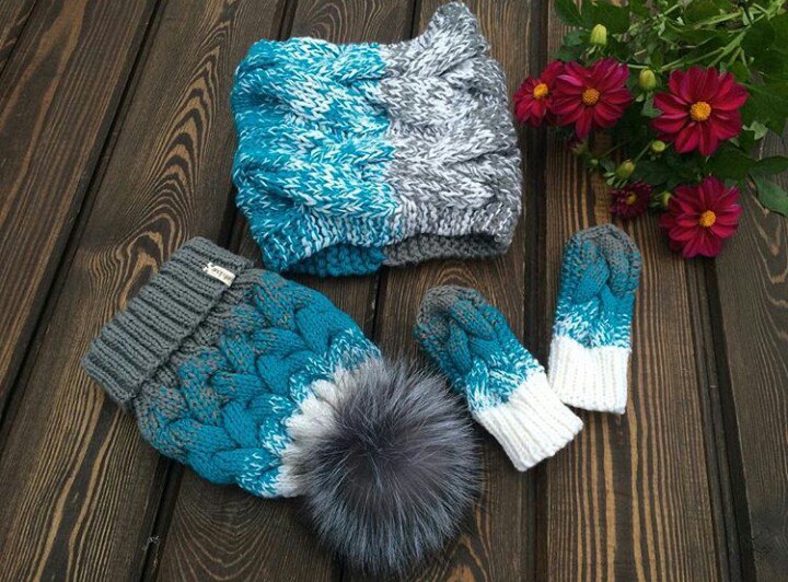 Благодарю, Ксения! Шапочки с натуральными помпонами 1200р. В комплекте со снудом 2500р. Пряжа очень мягкая. Цвета любые.