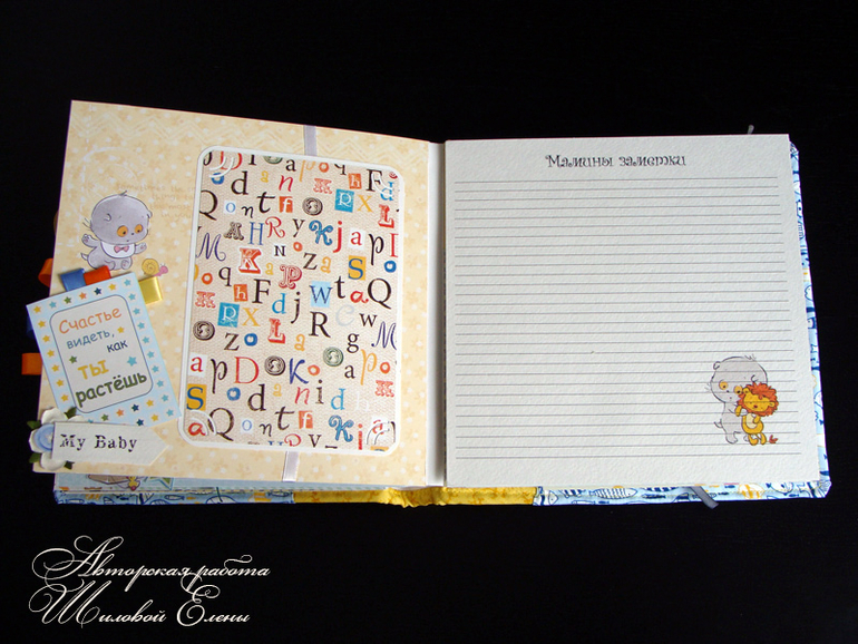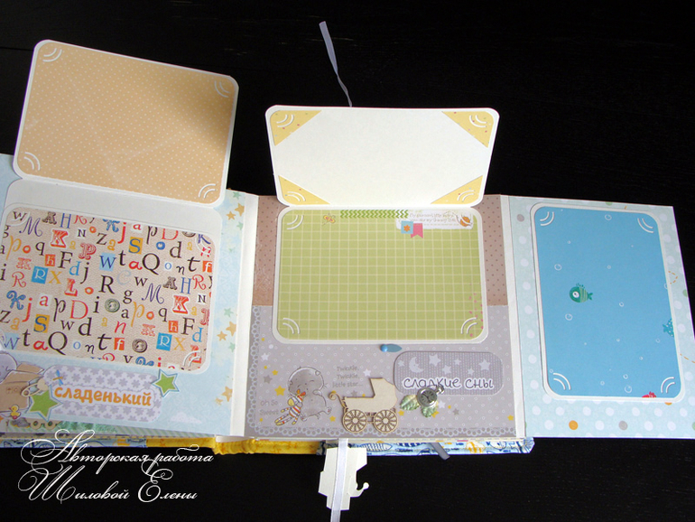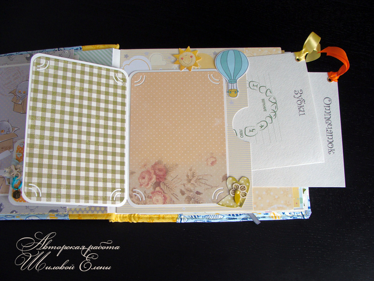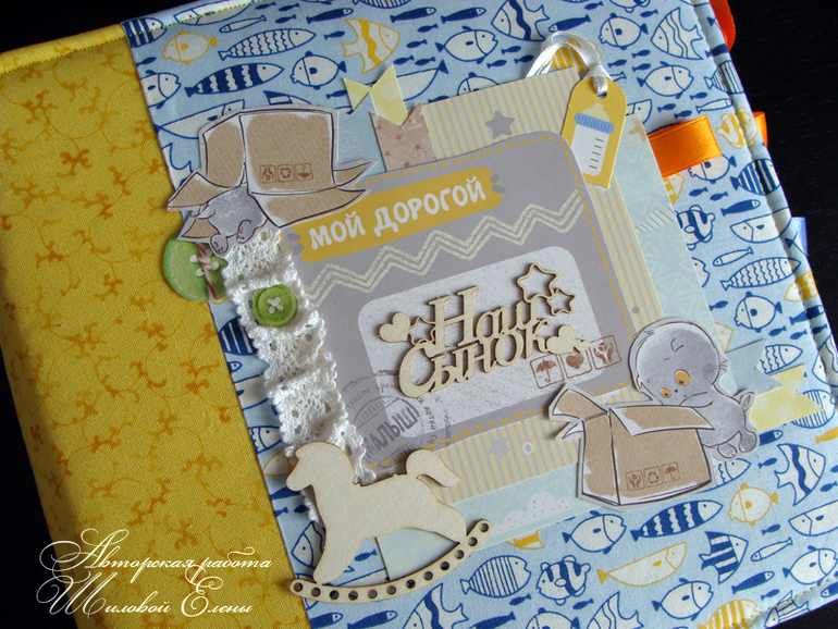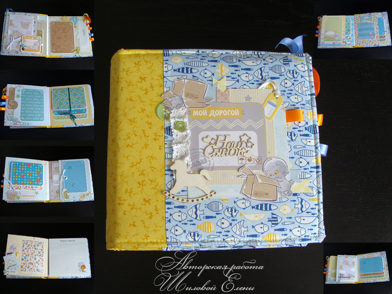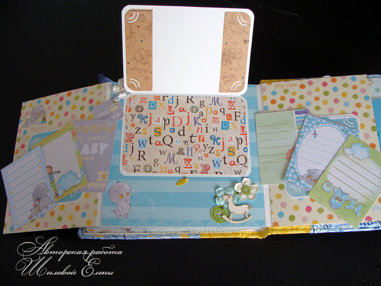 Скрапбукинг (альбомы, открытки и пр.)Фотоальбом выполнен полностью вручную с нуля. В альбоме можно разместить 50 фото. Множество потайных кармашков и разворотов с разными приятностями, интересно рассматривать. Фотоальбом так же содержит: метрику, бирочку с окошком для узи, бирочку с окошком для локона, 6 карточек для записей, карточку для отпечатка ручки и ножки, карточку-схему прорезывания зубов с разлиновкой для записей об особенностях прорезывания, таблицу роста и веса по месяцам, таблицу развития навыков малыша, страницу для других заметок о развитии Вашего сыночка.