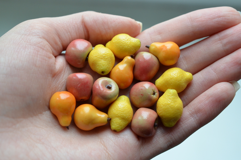 Фрукты прочные, отлично подходят для развивающих игр с детьми, сенсорных коробок, в качестве дидактического материала и пр.