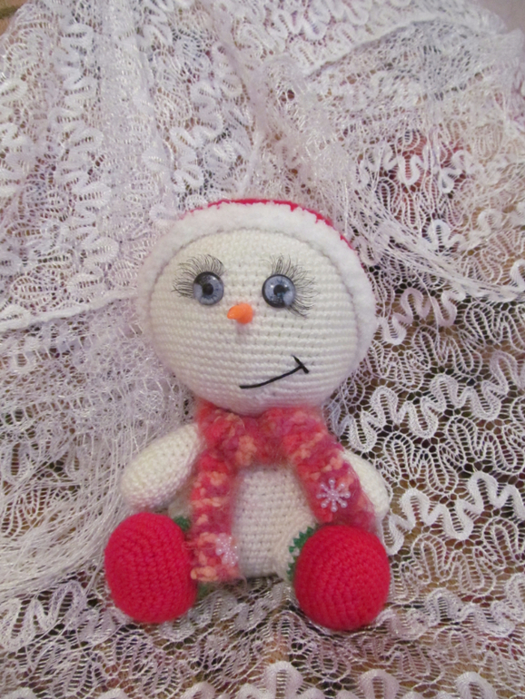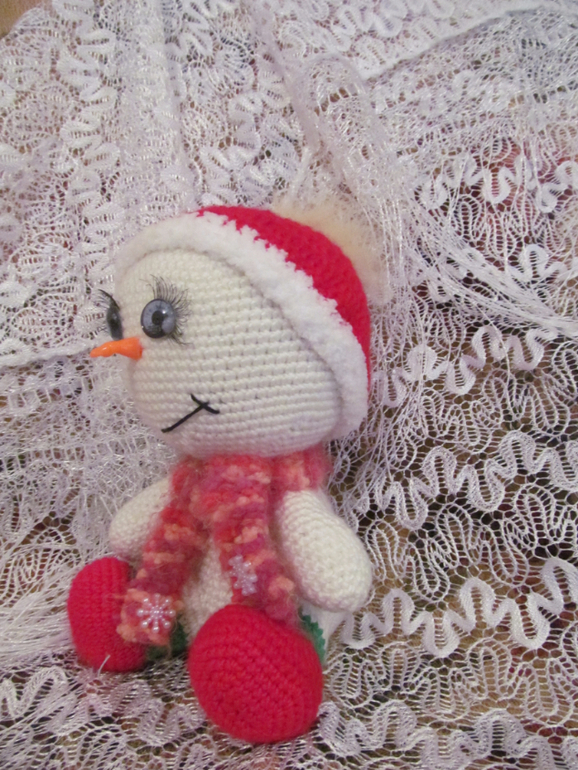 Ну и как же без снеговичков! Вот такие вяжутся и ждут зимы! Снеговички есть в других вариациях еще.