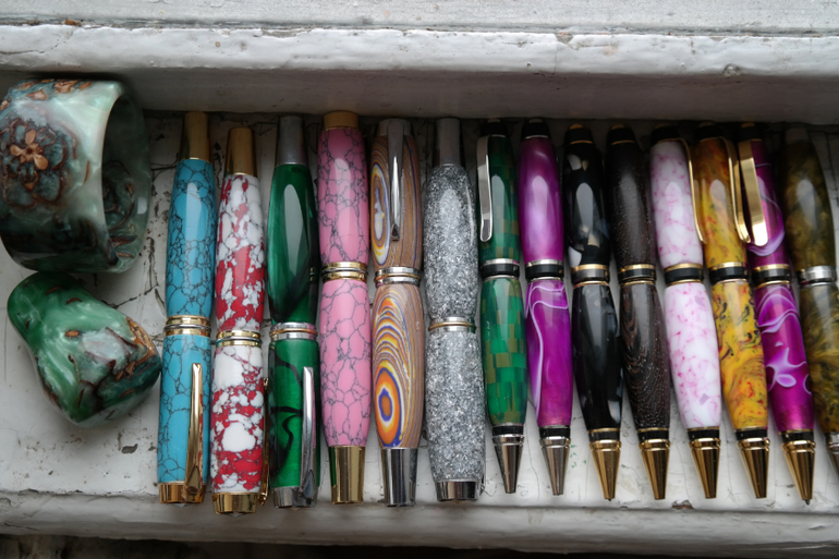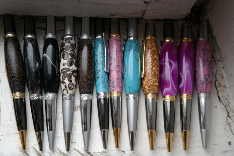 ручная работа. лучший подарок для мужчин и женщин . не теряемая большая тяжёлая. смотрится богато и эксклюзивно . двух одинаковых не бывает. материал металл, дерево, акриловый камень, американс фурнитура. ДВУХ ОДИНАКОВЫХ НЕ СУЩЕСТВУЕТ. ОТ 1800Р И ДОРОЖЕ . перьевые , шариковые с механизмом затвора, поворотные, сигара, патрон с кнопкой, патрон с затвором, патрон.