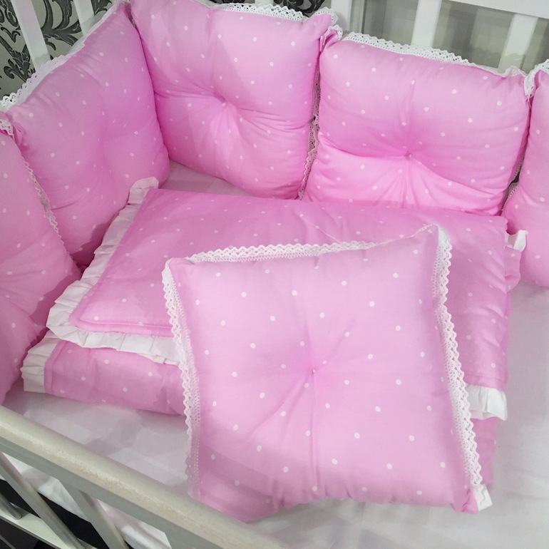 Шью на продажу и обменСшила комплект: бортики, одеялко и простыня на резинке. Комплект новый! Нежно розовый в горошек и белоснежный сатин. Наполнитель- синтепух. Отделка хлопковым кружевом. Стоимость 7000₽