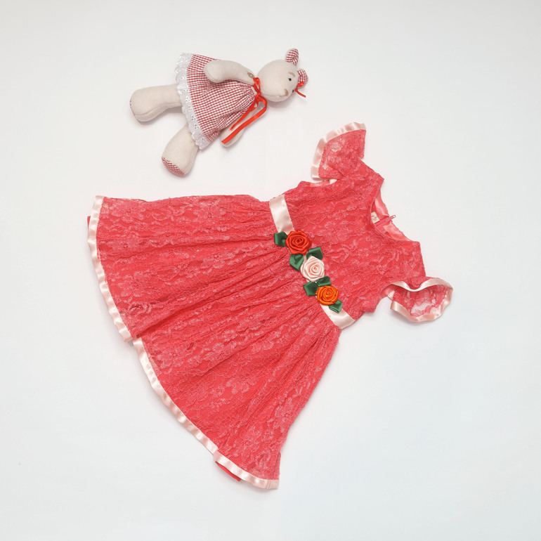 Платье Hand Made кружевное, розовое с цветами на поясе размер от 2х до 10ти лет