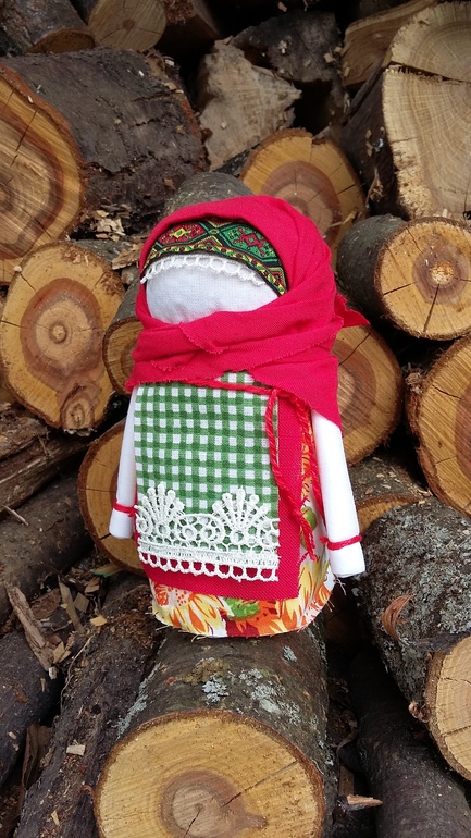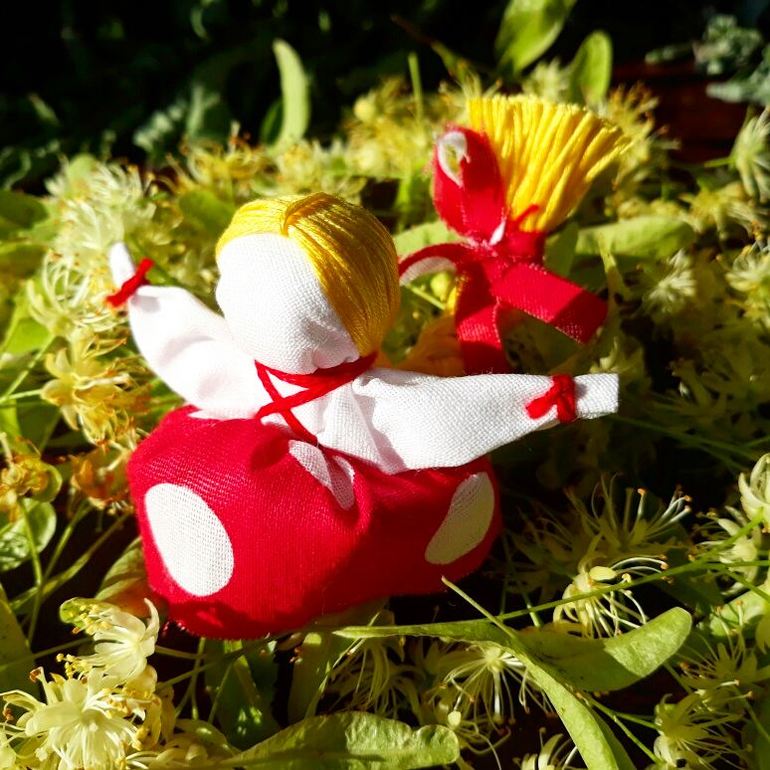 Название куколки говорит само за себя - приносит Счастье! Это девушка с очень длинной косой и поднятыми к Солнцу ручками. Длинная толстая коса куколки, загнутая вперед и вверх символизирует женскую силу, здоровье, достаток, длинную и счастливую жизнь, также в рост и развитие.