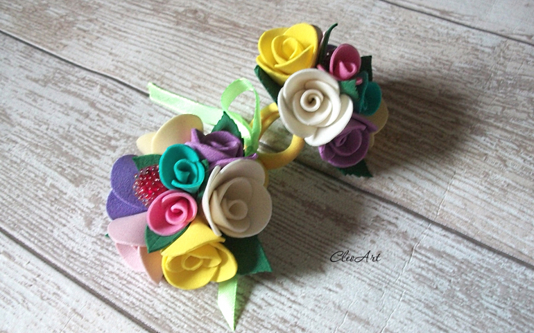 Комплект ярких и оригинальных резиночек для девочки "Монпансье". Композиция из разноцветных цветочков надежно закреплена на эластичную резинку