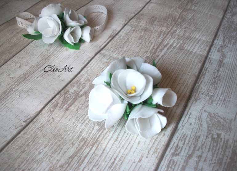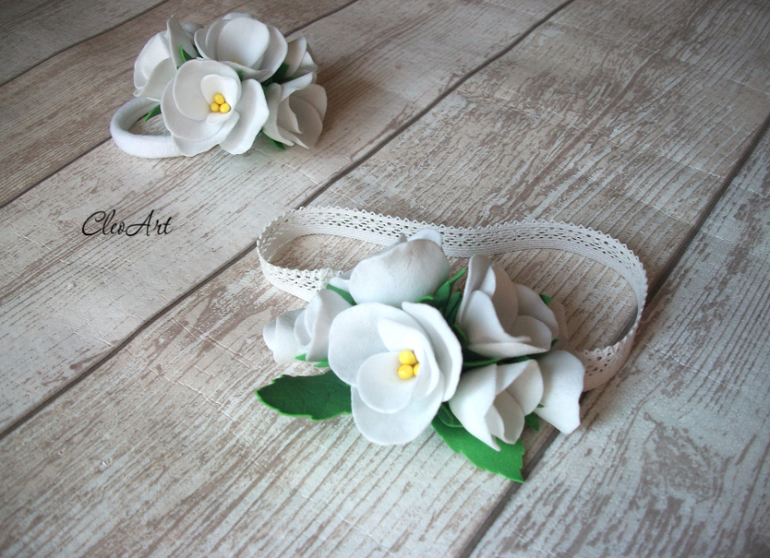 Бижутерия, броши, аксессуары для волосЧудесный комплект, состоящий из резинки для волос для мамы и повязки для дочки, создан из трепетных белоснежных цветочков. Такое украшение станет прекрасным дополнением нежному и романтичному образу.Отлично подойдет для семейной фотосессии.