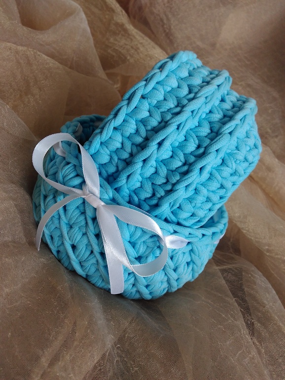 Здравствуйте, был ещё розовый набор, но его забрали уже) могу связать под заказ нужного цвета и размера