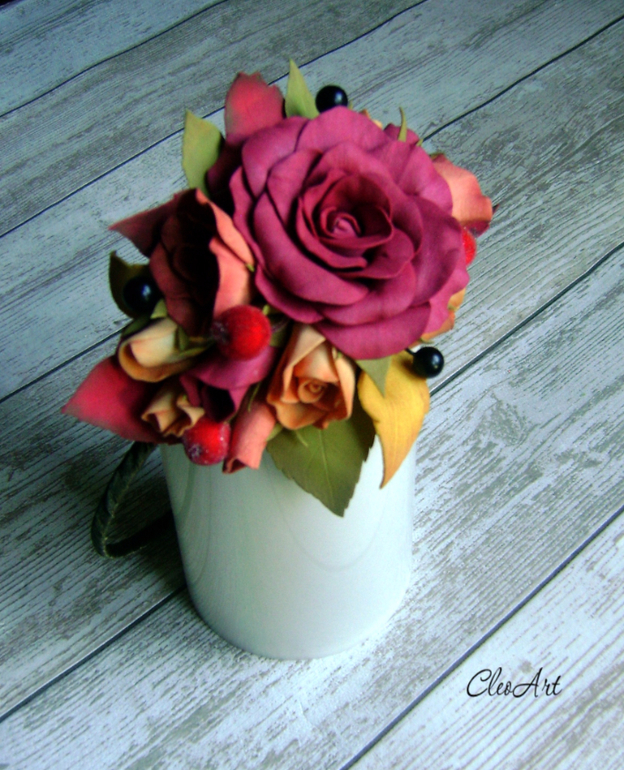 Украшение для волос осенней тематики. Композиция в бордово-желтых тонах выполнена из фоамирана и декоративных ягод, основа - металлический ободок.