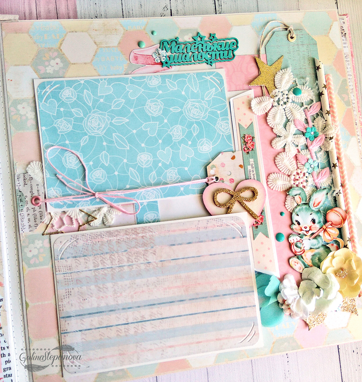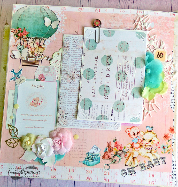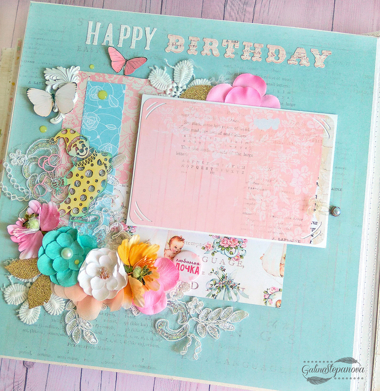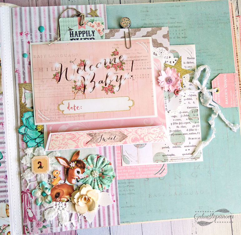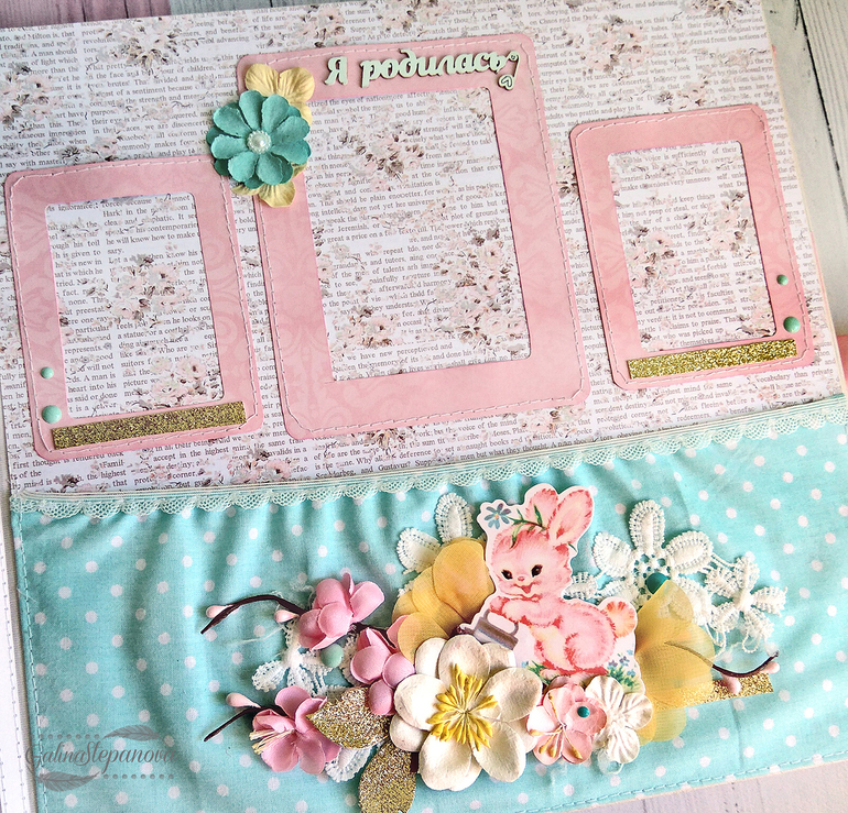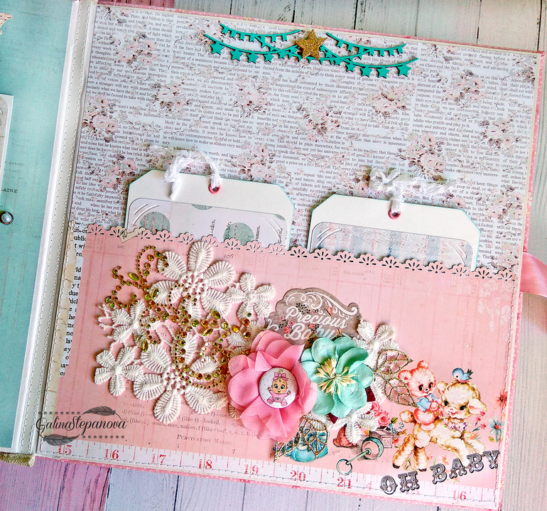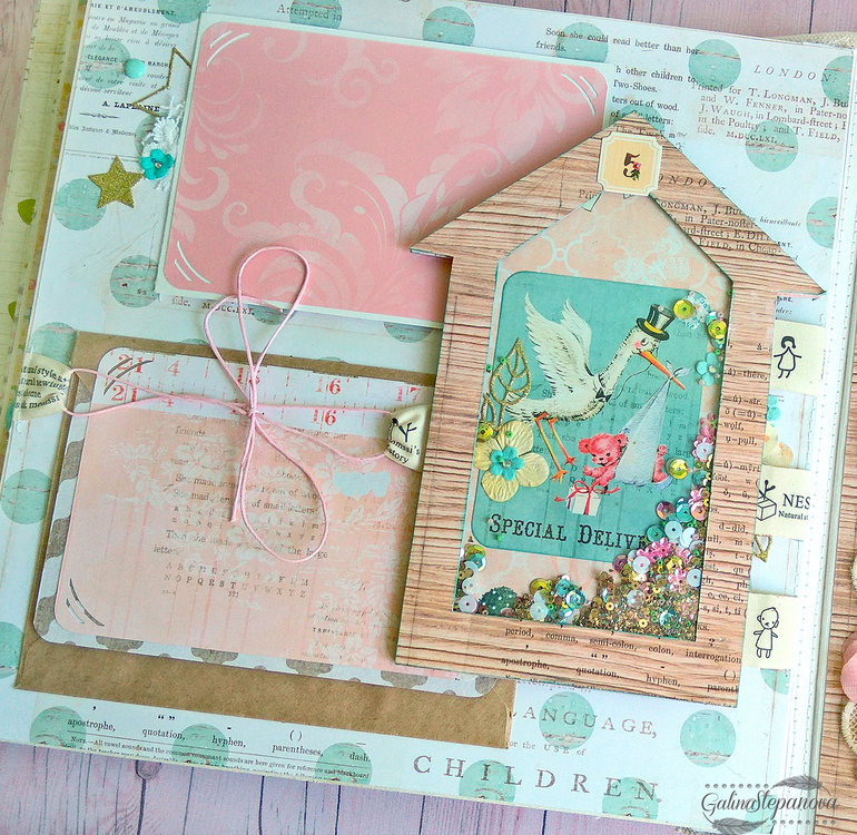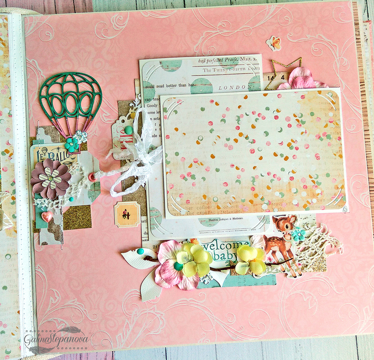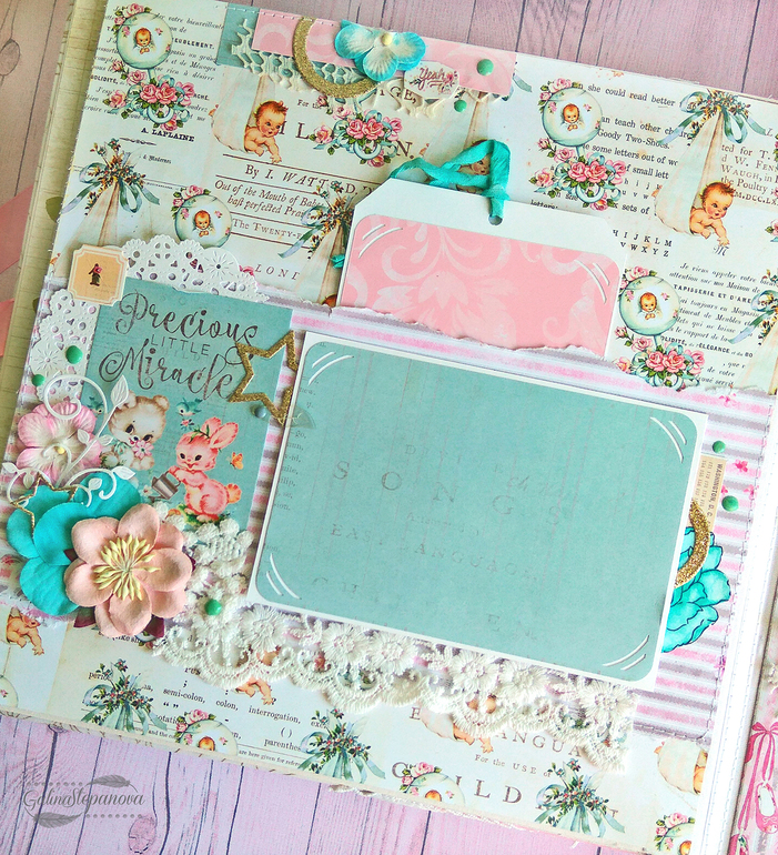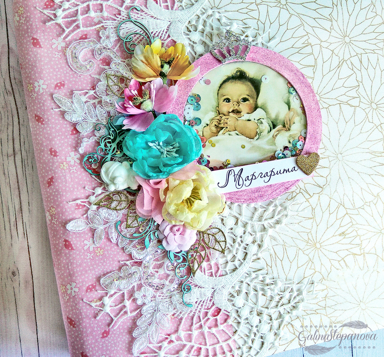 Скрапбукинг (альбомы, открытки и пр.)Всем привет! Красивый и изысканный детский фотоальбом посвящен первому году жизни девочки, в котором обитает настоящая сказка. Полностью ручная работа.. В альбоме много интересных элементов в виде красивых шейкеров, что делает его еще притягательнее и эксклюзивнее. Размер 30х30 см, 8 разворотов (т.е. 16 страниц), книжный переплет, мягкая обложка из натурального хлопка, на которой также присутствует шейкер. Имеется страничка с семейным деревом, страничка о выписке "Я родилась" и по 1 странице на каждый месяц жизни ребенка.