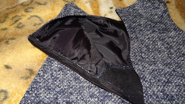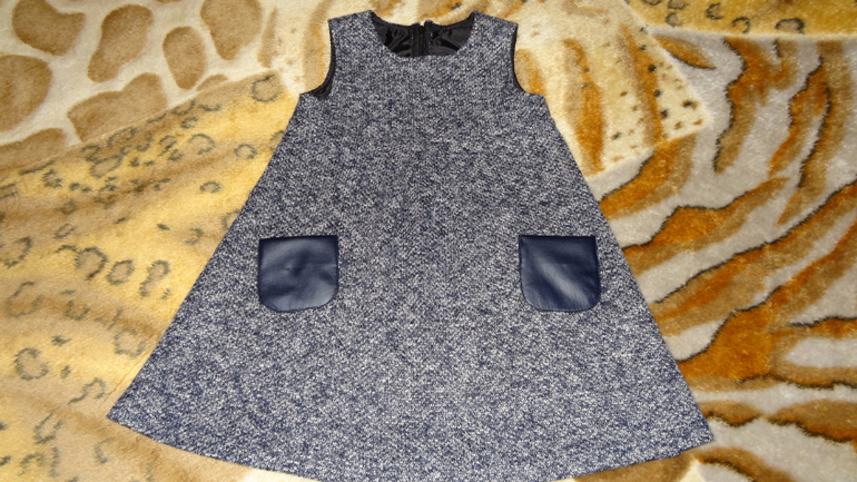 Потайная молния /запасная прилагается/, кокетка на подкладе, накладные карманы из мягкого кожзама, так же на подкладе. По юбке бантовая складка. На девочку рост 110 см.