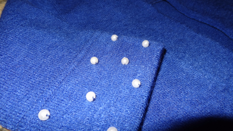 из теплого трикотажа. Рукав три четверти, под пояс, низ рукавов расшит бусинами. на возраст 2,5 до 4 лет / смотря какая малышка/. Доп. бусины прилагаются.