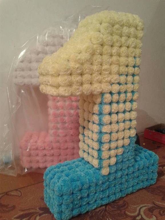 Оформление праздников, аксессуары для фотосессийБольшие объемные цифры, выполненные в разной технике - отличное решение для оформления праздника девочки или мальчика. Фото ниже. Очень милые, нежные, красивые цифры! Фотографии с ними будут самыми лучшими :) Сделаю на заказ.Срок изготовления 1 неделя. Цвета и размеры по вашему желанию. Указанная цена - за цифру, размером 80х50х15 см.