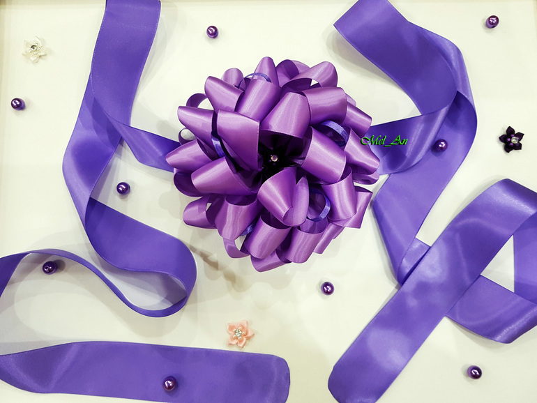 Диаметр банта 16см, длина ленты в комплекте 2-2,5 метра.