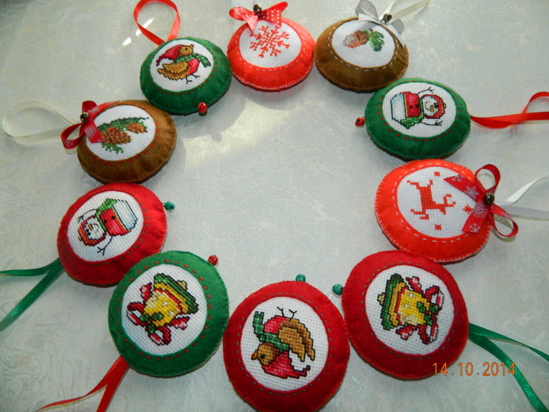 Каждая игрушка сшита вручную, вышита бисером, пайетками, украшена декоративными лентами.