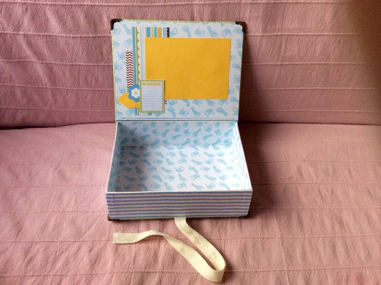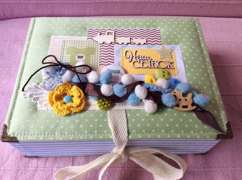 Коробочка для первых сокровищ малыша.Туда можно положить первые носочки,чепчик,сосочку,бирочку,прищепочку от пупка,первую погремушку,царапки или что-то другое,что дорого Вашему сердцу.размер коробочки 19,5x15x5.5